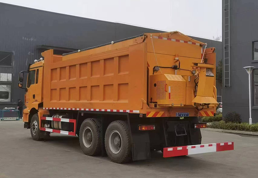 | 上裝配置 | 箱體采用優(yōu)質(zhì)碳鋼板,標(biāo)配10立方撒布機(jī)也可以選裝12立方,不銹鋼撒布機(jī)甩盤,撒布盤直徑550mm,撒布機(jī)采用 V 型料倉,結(jié)構(gòu)簡(jiǎn)單可靠,使融雪劑自動(dòng)落料,出料完全,無殘留,箭頭燈、篷布、過濾網(wǎng)、后爬梯。加裝3.5米雪鏟,可切換3.5米除雪滾刷(滾刷可選自帶動(dòng)力或者液壓取力)。 | ||