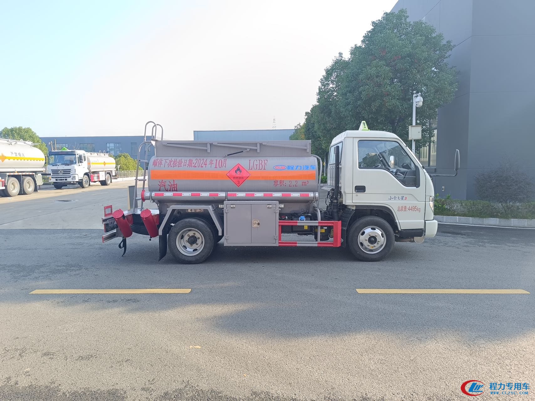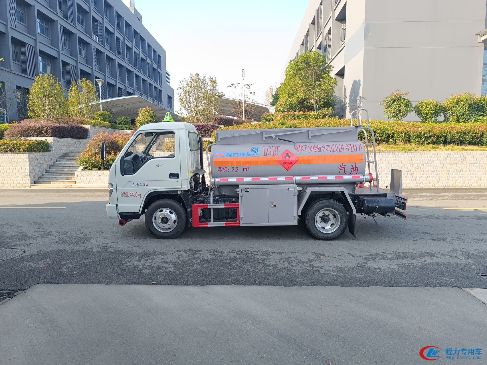 上裝配置 公告容積:2.2方,實際有效容積:2.5方,可出汽柴油罐檢報告,Q235B板材,筒體4.2mm厚,封頭4.5mm厚,隔板4.2mm厚,單倉,罐頂壹個罐口,帶全套歐標系統(下裝油、油氣回收、防溢流探桿、防靜電線盤),1個海底閥帶語音報警裝置,帶60/30專用油泵(可泵進泵出),(可選裝大流量加油機和15米加粗卷盤及槍),后爬梯、手動護欄、工具箱、后保險杠、側防護欄,按新標準制作,其他廠家標配,可出汽柴油介質的罐體檢測報告,提供底盤證,整車證,上戶發票。