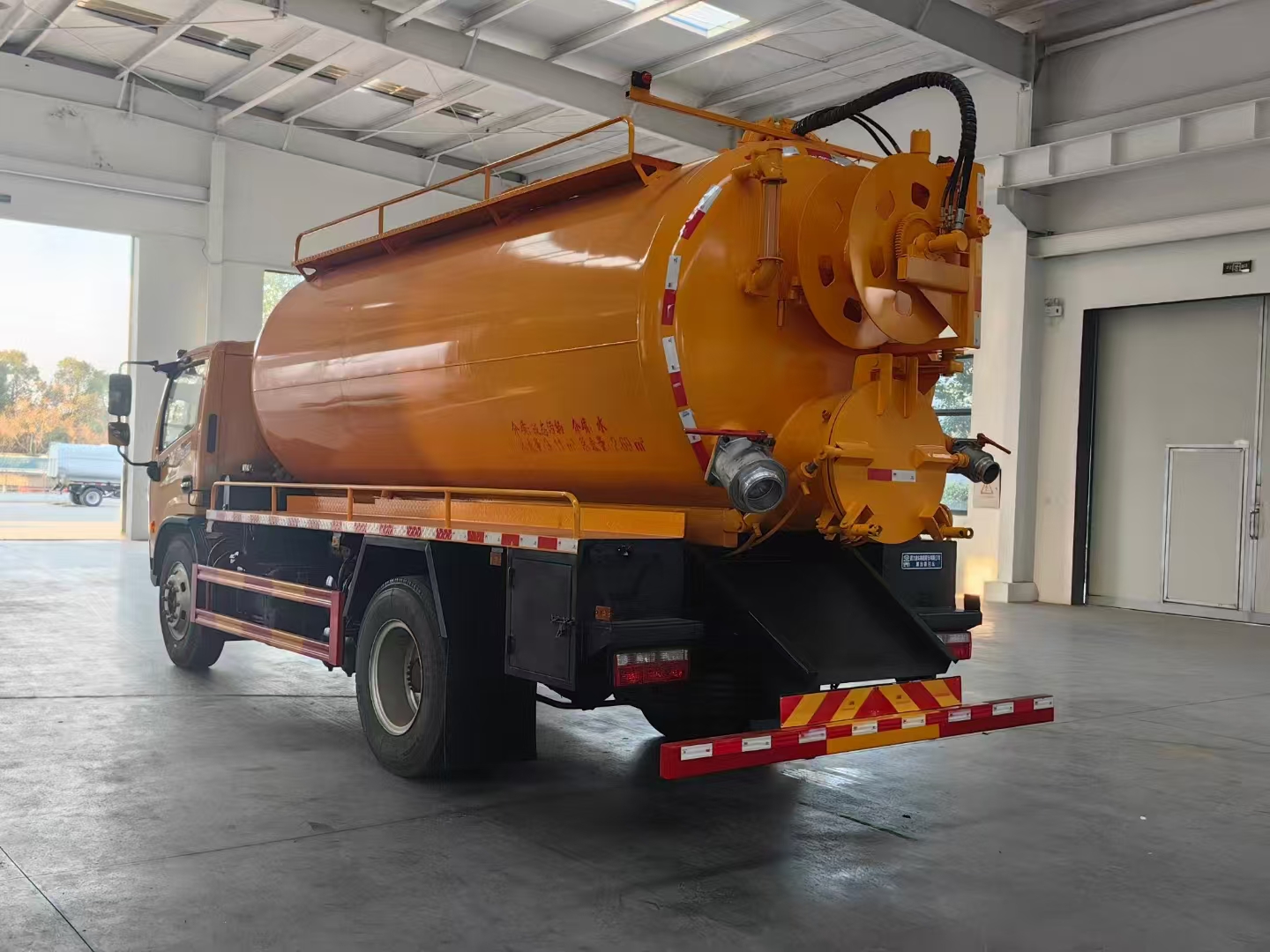 上裝配置 吸污罐容積約9立方,清水箱約4立方,污水罐6mm制作,清水罐和污水罐安裝互通。清水罐一個量水管,水箱最低點一個DN65球閥,帶消防接頭,品孚255流量高壓泵,帶60米19號高壓管,卷盤液壓旋轉(zhuǎn)180度,液壓收放管. 污水罐:SK-15水循環(huán)泵,水循環(huán)泵水箱為碳鋼材質(zhì),頂部防溢閥位置盡量最低,后蓋600液壓打開,100球閥直通罐頂吸污尾部一個150的排污球閥,吸污壓力表裝在水箱附近,罐體尾部兩側(cè)工具箱,手動油門,1根8米吸污管帶陰陽端接口,一個水雷槍頭,其他廠內(nèi)標(biāo)配…